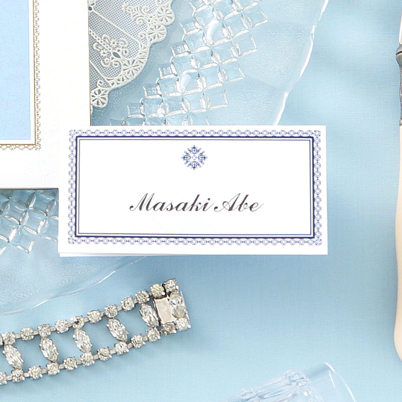 ロイヤルブルーの縁取りがエレガントな席礼お招きしたゲストひとりひとりのお名前が記された結婚式の席礼は、ゲストにとって意外なほど印象に残るウェディングペーパーアイテム。